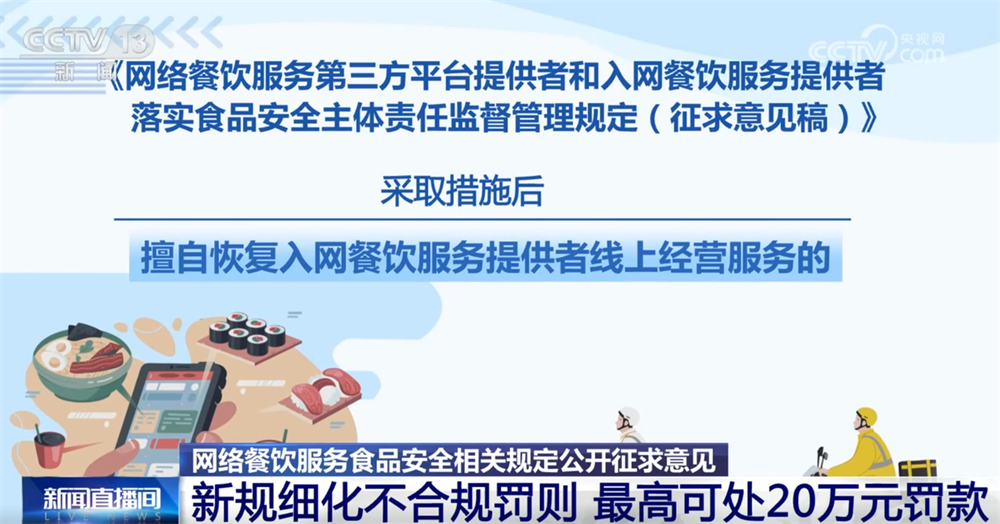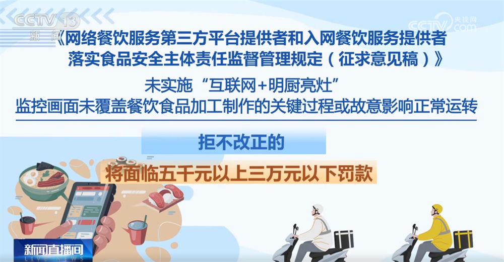 记者16日从市场监管总局领会到,为进一步加强收集餐饮办事食物平安监管,《收集餐饮办事第三方平台供给者和入网餐饮办事供给者落实食物平安从体义务监视办理(收罗看法稿)》面向社会公开收罗看法。这份办理收罗看法稿有哪些亮点?一路来领会。收罗看法稿明白了平台供给者收集餐饮办事食物平安从体义务,要求对入网餐饮办事供给者的运营天分、加工制做、卫生等进行监测和抽查。每月线下抽查入网餐饮办事供给者的比例不低于百分之五,两年内实现全笼盖。监测和抽查成果留存备查,留存刻日不得少于2年。校验不成功的不得上线运营。