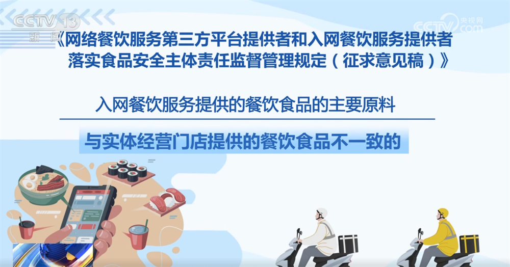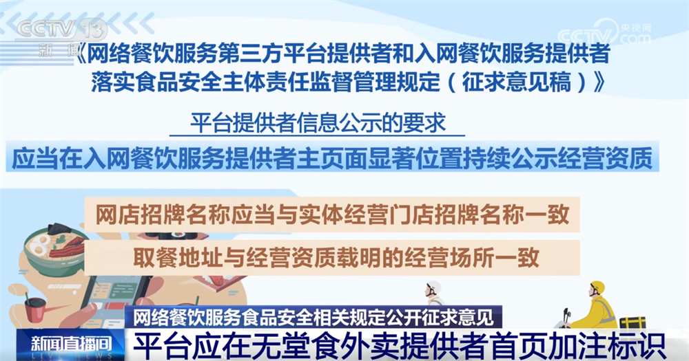 记者16日从市场监管总局领会到,为进一步加强收集餐饮办事食物平安监管,《收集餐饮办事第三方平台供给者和入网餐饮办事供给者落实食物平安从体义务监视办理(收罗看法稿)》面向社会公开收罗看法。这份办理收罗看法稿有哪些亮点?一路来领会。收罗看法稿明白了平台供给者收集餐饮办事食物平安从体义务,要求对入网餐饮办事供给者的运营天分、加工制做、卫生等进行监测和抽查。每月线下抽查入网餐饮办事供给者的比例不低于百分之五,两年内实现全笼盖。监测和抽查成果留存备查,留存刻日不得少于2年。校验不成功的不得上线运营。